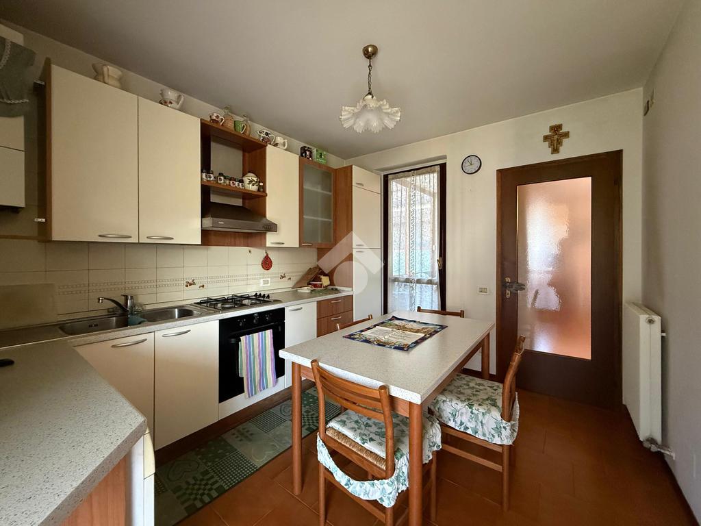 Proponiamo in vendita appartamento trilocale con giardino situato al piano rialzato, ingresso indipendente, in una palazzina del 1983.