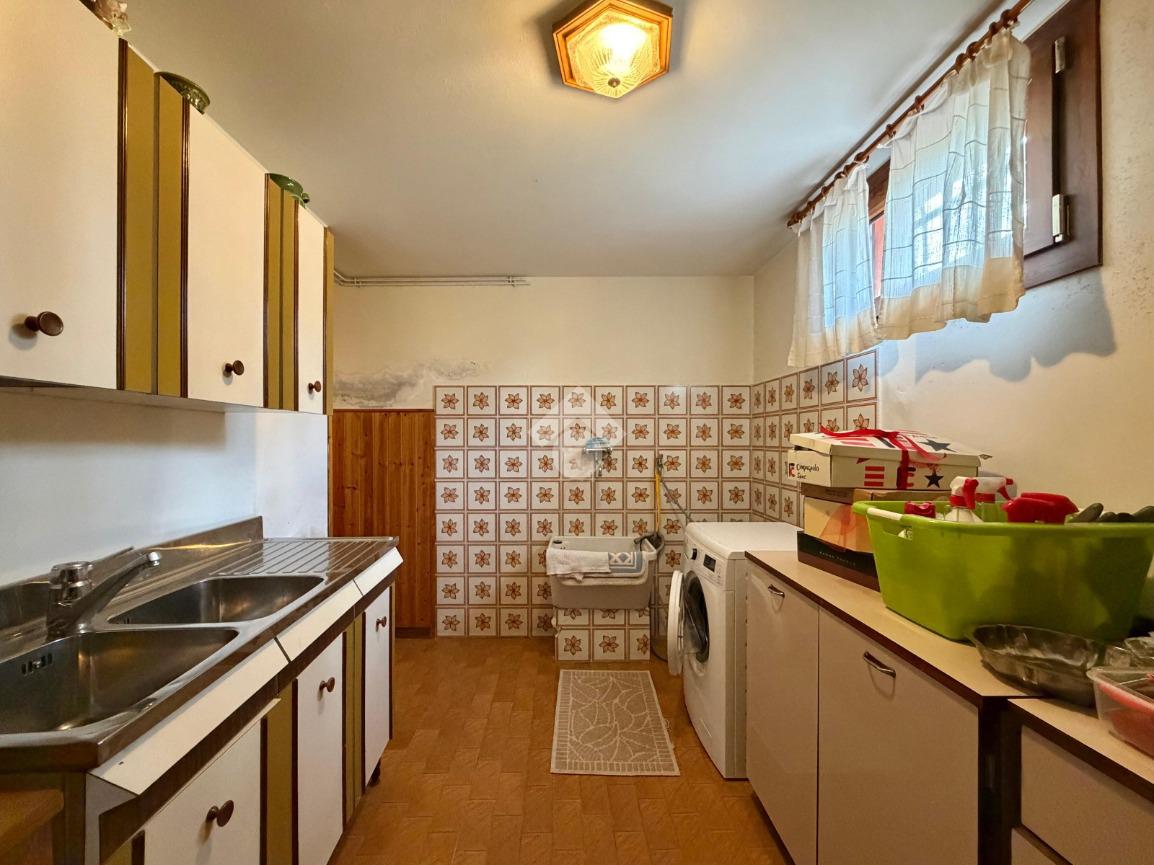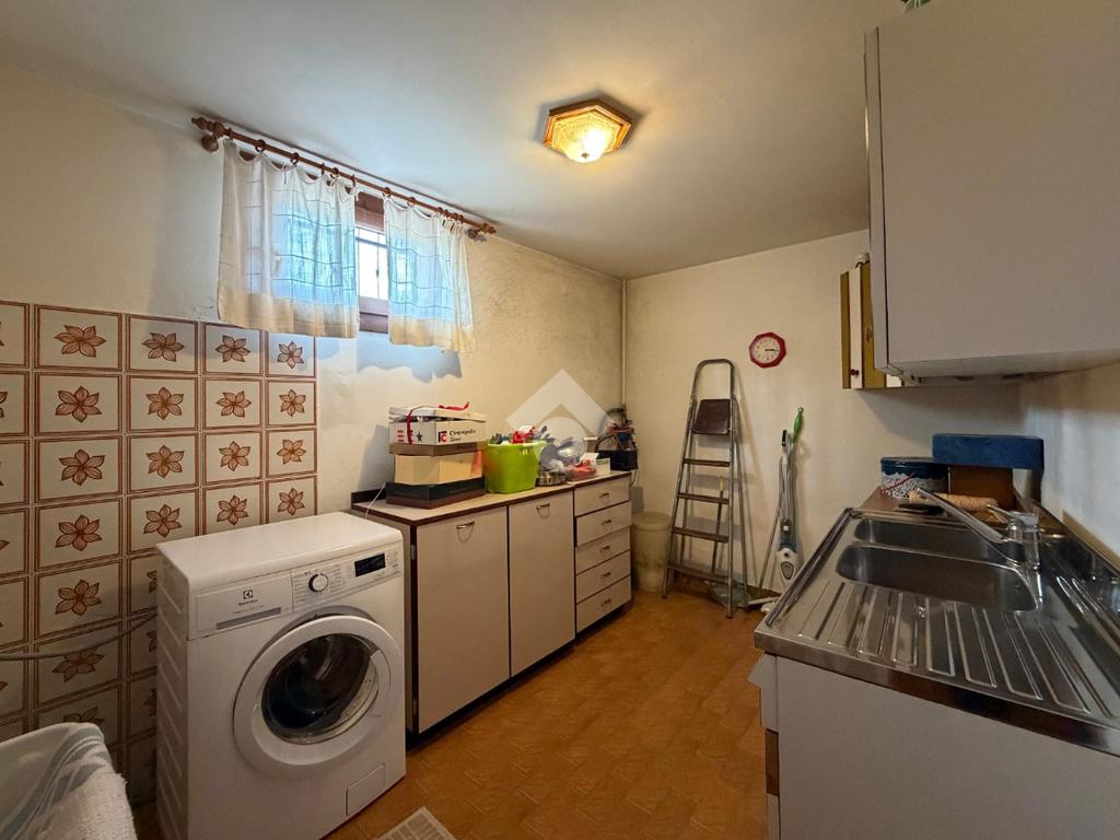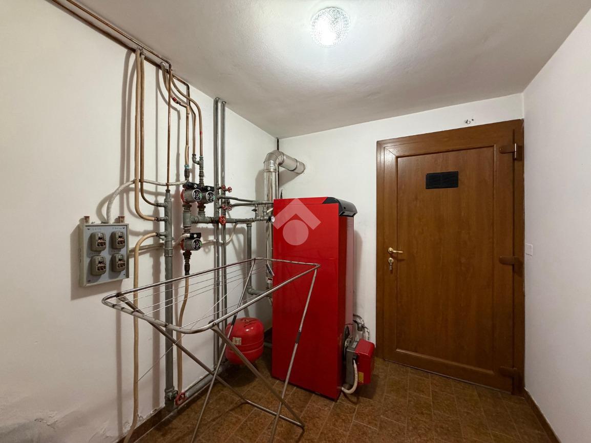 Al piano interrato si trovano invece i locali accessori, tra cui una cantina, una lavanderia, la centrale termica, un ripostiglio e un magazzino.